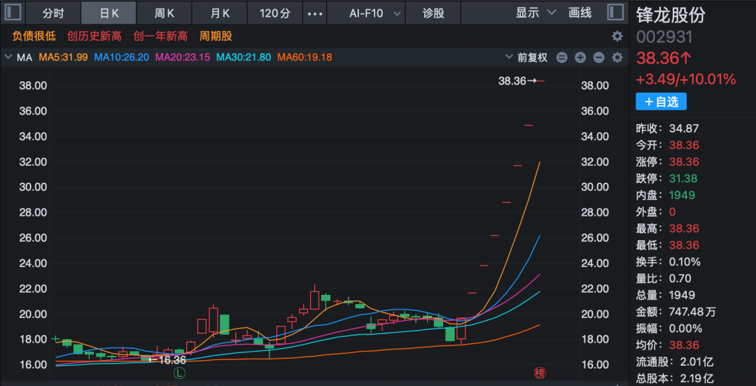 在前述背景下,锋龙股份在2025年12月25日复牌后,开启连板模式。
