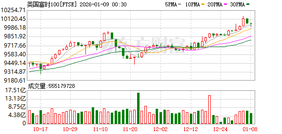 欧股市场:欧洲三大股指01月06日全线上涨。英国伦敦股市《金融时报》100种股票平均价格指数报收于10122.73点,较前一交易日上涨118.16点,涨幅为1.18%;法国巴黎股市CAC40指数报收于8237.43点,较前一交易日上涨25.93点,涨幅为0.32%;德国法兰克福股市DAX指数报收于24892.2点,较前一交易日上涨23.51点,涨幅为0.09%。