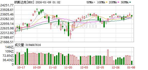 美股市场:美股三大指数01月06日收盘全线上涨,道指、标普均创收盘历史新高。截至收盘,道琼斯工业平均指数比前一交易日上涨484.9点,收于49462.08点,涨幅为0.99%;标准普尔500种股票指数上涨42.77点,收于6944.82点,涨幅为0.62%;纳斯达克综合指数上涨151.35点,收于23547.17点,涨幅为0.65%。