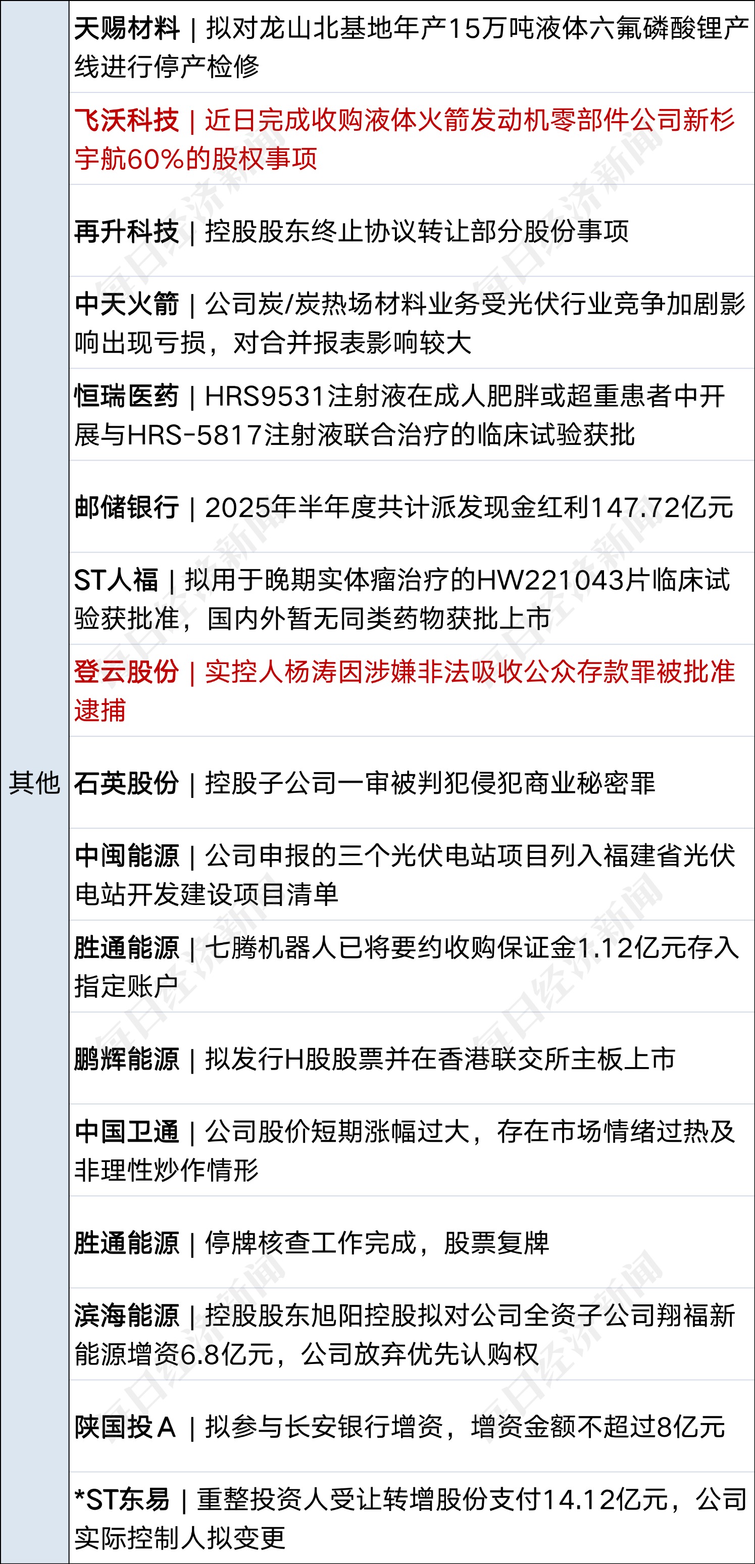 ST易购(SZ002024,股价1.71元,市值158亿元):1月5日,ST易购公告,股东重整计划获法院批准,苏宁电器集团等38家公司重整计划落地。公司股东张近东(苏宁创始人)拟将其持有的公司未质押股票的收益权和已质押股票的超额收益权,注入重整服务信托。重整计划执行期36个月,期间苏宁电器集团和苏宁控股集团所持苏宁易购股票不处置。