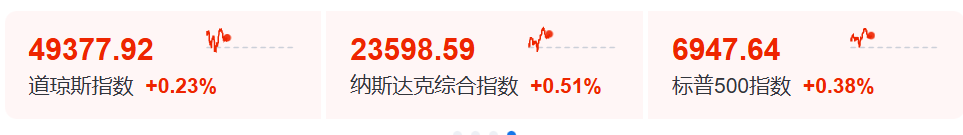 1月9日晚间,美股三大指数盘中拉升,道指涨超100点,纳指涨约0.5%,标普500指数涨约0.4%。