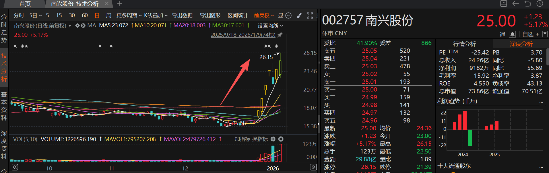 A股年报行情纵深推进,披露2025年年报业绩预告次日,南兴股份收盘涨停。