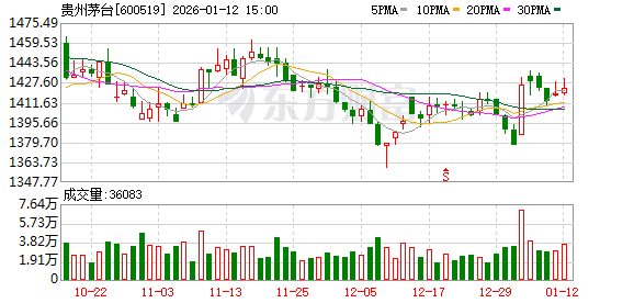 据大智慧VIP,截至1月9日收盘,贵州茅台(600519.SH)报1419.10元/股,涨幅为0.48%;今年以来累计涨3.04%。