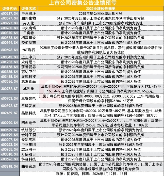 1月12日晚间,多家商业航天概念股、AI应用概念股公告提示风险。与此同时,一大波上市公司的预亏公告来袭。