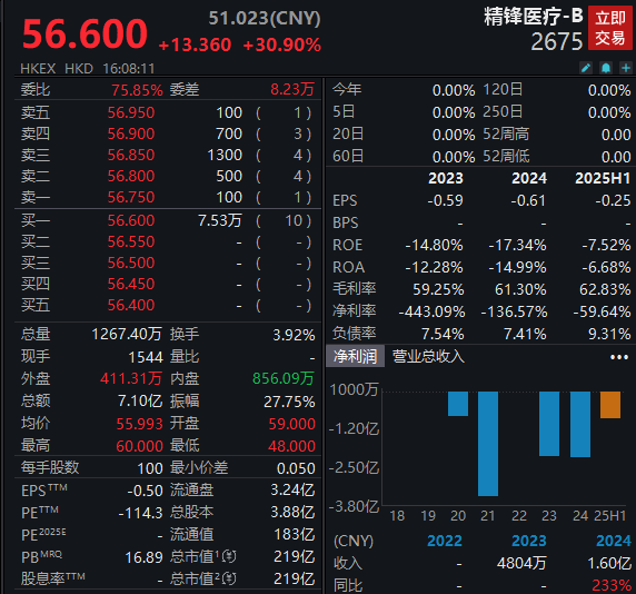 精锋医疗-B成立于2017年,是医疗器械行业的先进手术机器人公司。根据弗若斯特沙利文的资料,精锋医疗-B是中国首家、全球第二家同时取得多孔腔镜手术机器人、单孔腔镜手术机器人及自然腔道手术机器人注册审批的公司。该公司的核心产品精锋®多孔腔镜手术机器人是一种机器人辅助设备,2022年12月,该公司获得国家药监局对本产品首个型号MP1000的注册批准,应用于泌尿外科手术。2023年8月,MP1000的临床应用范围拓展至妇科、普外科及胸外科手术。公司于2024年在中国售出了20台精锋®多孔腔镜手术机器人,在国内手术机器人制造商中排名第一。按合约销量计,精锋医疗-B已于截至2025年6月30日的六个月签订了31台精锋®多孔腔镜手术机器人的销售协议。