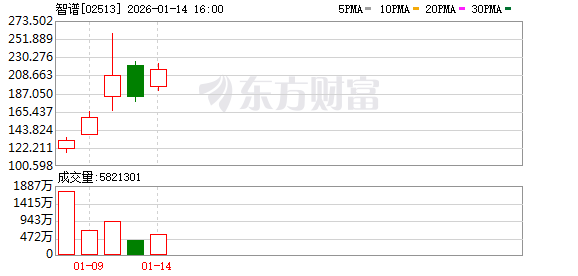 截至今日收盘,智谱盘中最高涨超60%,市值一度超1100亿港元。最高触及每股258港元,较发行价116.2港元翻倍,收盘价在每股208.4港元。