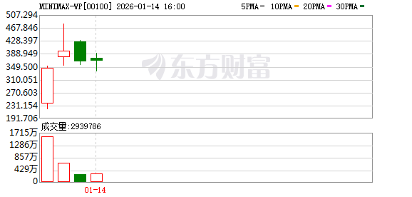 MiniMax最高涨至每股479港元,涨幅约15%-31%,收盘价每股378港元,总市值约1231亿港元。