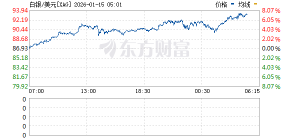 现货白银日内涨幅扩大至6%,续创历史新高,现报92.2美元/盎司。