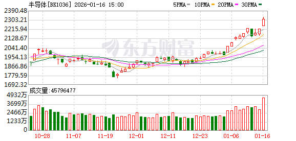 1月15日,全球晶圆厂龙头企业台积电发布的2025年第四季度业绩远超预期,连续第七个季度实现两位数增长,并将2026年资本开支指引大幅上调至520亿-560亿美元,较此前预期高出近四成,进一步验证了人工智能产业链强劲需求的长期性和可持续性。在此背景下,今日早盘,半导体领域整体交投情绪火热,尤其是处于产业链上游的材料和设备环节成为市场的重要焦点,市场热情快速走高、成交同步放量。