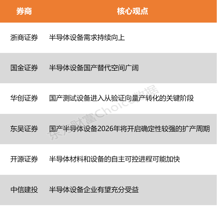 浙商证券研报表示,在国内市场,先进逻辑与存储产能扩产有望形成共振,叠加自主可控趋势下国产化率的进一步提升,共同带动半导体设备需求持续向上。国金证券指出,半导体设备是半导体产业链的基石,存储扩产与自主可控共振,国产替代空间广阔。