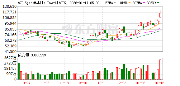 当地时间周五(1月16日),美股商业航天板块逆市走强。截至收盘,美国卫星通信公司AST SpaceMobile股价大涨超14%,创历史新高,总市值逼近420亿美元;Rocket Lab(火箭实验室)涨超6%,同样刷新历史高点,总市值突破510亿美元。其他个股方面,克瑞拓斯安全防卫涨近5%,维珍银河涨超2%。