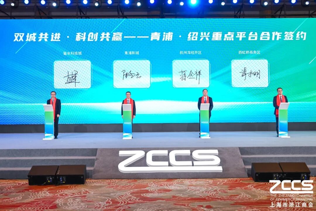 随后,大会举行了“双城共进·科创共赢——青浦·绍兴重点平台合作签约仪式”,青浦新城、西虹桥商务区、鉴水科技城、杭州湾经开区作为平台代表签约。依托长三角一体化发展战略,上海市青浦区与浙江省绍兴市围绕产业互补、人才互通、技术互融,推动两地产业园区、科创载体与企业主体深度对接。这次签约是在国家战略引领下,两个城市迈出了“协同共赢”的关键一步。这不仅是两个城市间的强强联合,更是沪浙两地产业链、创新链、人才链深度融合的生动实践。