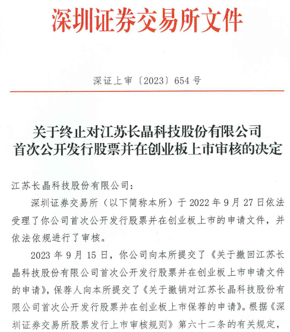 根据披露,长晶科技曾于2022年9月向深交所递交创业板上市申请并获得受理。在经过两轮问询后,因公司于2023年9月主动向深交所申请撤回上市申请,深交所于2023年9月19日终止了对其发行上市的审核。