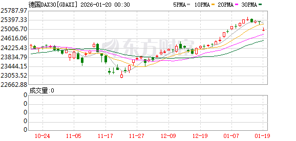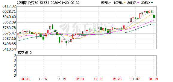 受“关税战”影响,1月19日,欧洲股市开盘后,主要指数全线杀跌,欧洲斯托克50指数、法国CAC40指数、德国DAX30指数、富时意大利MIB指数均跌超1%。汽车股集体下挫,宝马一度大跌超7%,大众汽车一度大跌超4%。另外,美股期指亦全线走低,截至北京时间16:30,纳斯达克100指数期货大跌1.2%,标普500指数期货跌近1%,道指期货跌0.7%。