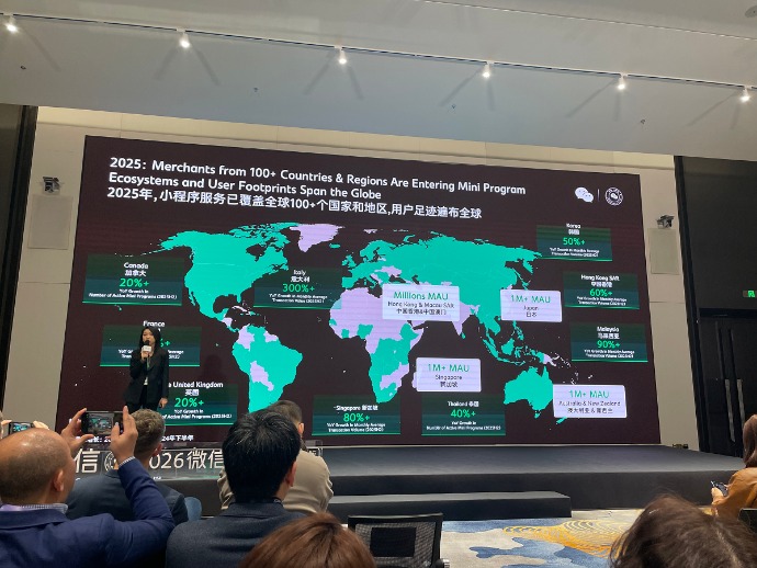 另外,全球越来越多的商家正通过小程序、微信支付等“中国式科技”推动“智慧场景升级”,小程序服务已覆盖全球100个国家和地区,全年跨境及境外用户使用小程序次数突破50亿次,下半年通过小程序完成的交易金额同比增长超七成。