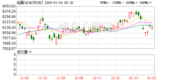 欧股市场:欧洲三大股指01月23日涨跌不一。英国伦敦股市《金融时报》100种股票平均价格指数报收于10143.44点,较前一交易日下跌6.61点,跌幅为0.07%;法国巴黎股市CAC40指数报收于8143.05点,较前一交易日下跌5.84点,跌幅为0.07%;德国法兰克福股市DAX指数报收于24900.71点,较前一交易日上涨44.24点,涨幅为0.18%。