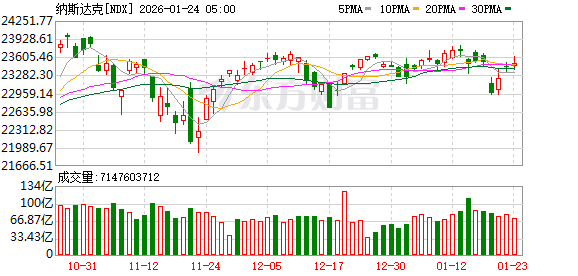美股市场:美股三大指数01月23日收盘涨跌不一。截至收盘,道琼斯工业平均指数比前一交易日下跌285.3点,收于49098.71点,跌幅为0.58%;标准普尔500种股票指数上涨2.26点,收于6915.61点,涨幅为0.03%;纳斯达克综合指数上涨65.22点,收于23501.24点,涨幅为0.28%。周线方面,道指本周累跌0.53%,纳指累跌0.06%,标普500指数累跌0.35%。