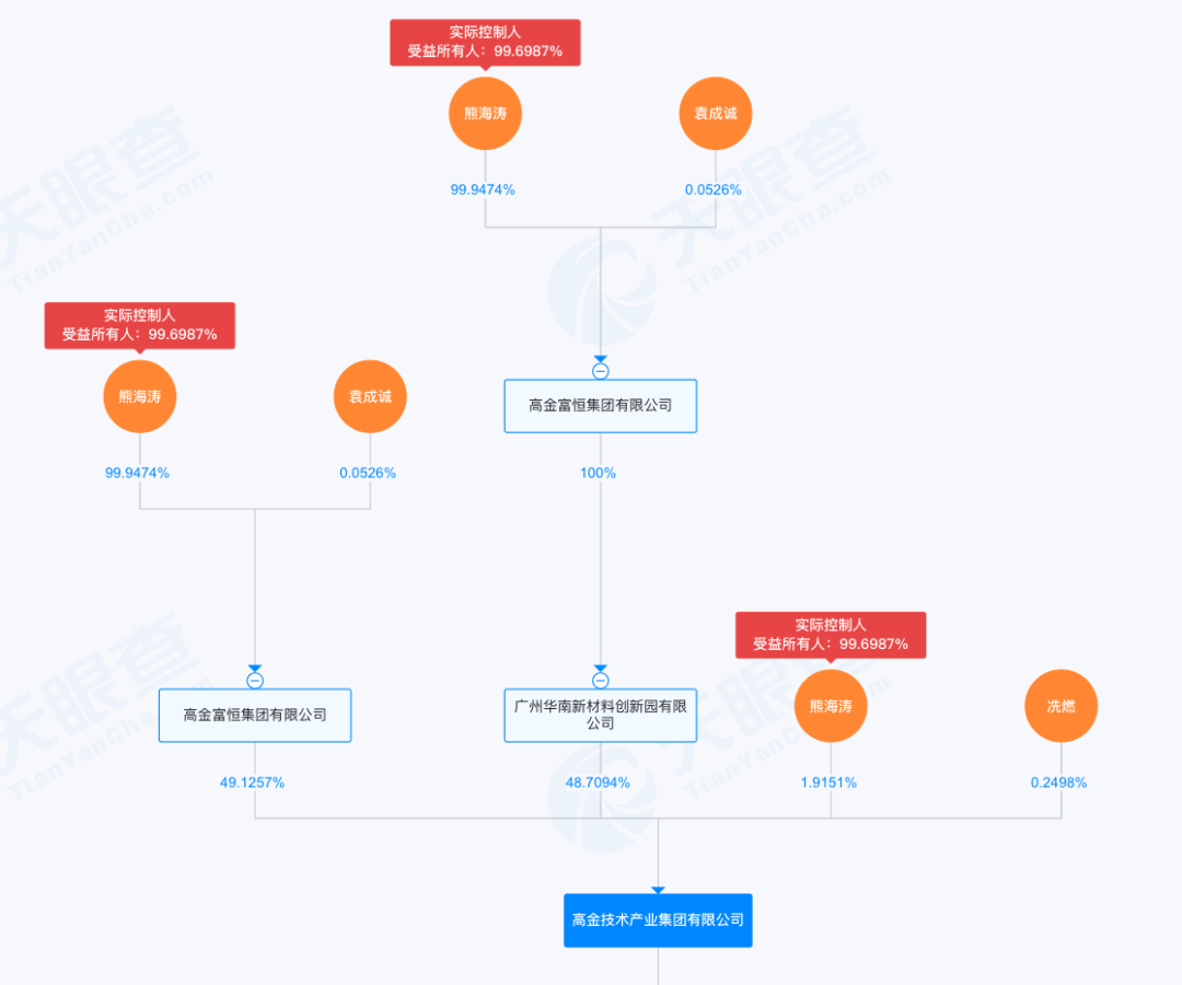 天眼查显示,东材科技、毅昌科技、高盟新材三家上市公司的第一大股东均为高金技术产业集团有限公司。实际控制人同为熊海涛。