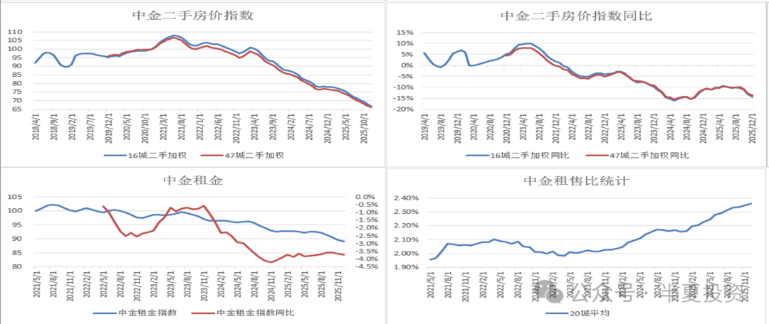 21年以来房价跌幅巨大,而租金的下跌幅度其实没有那么大。25城平均的这个租售比,从2.0%上升到了近2.4%。