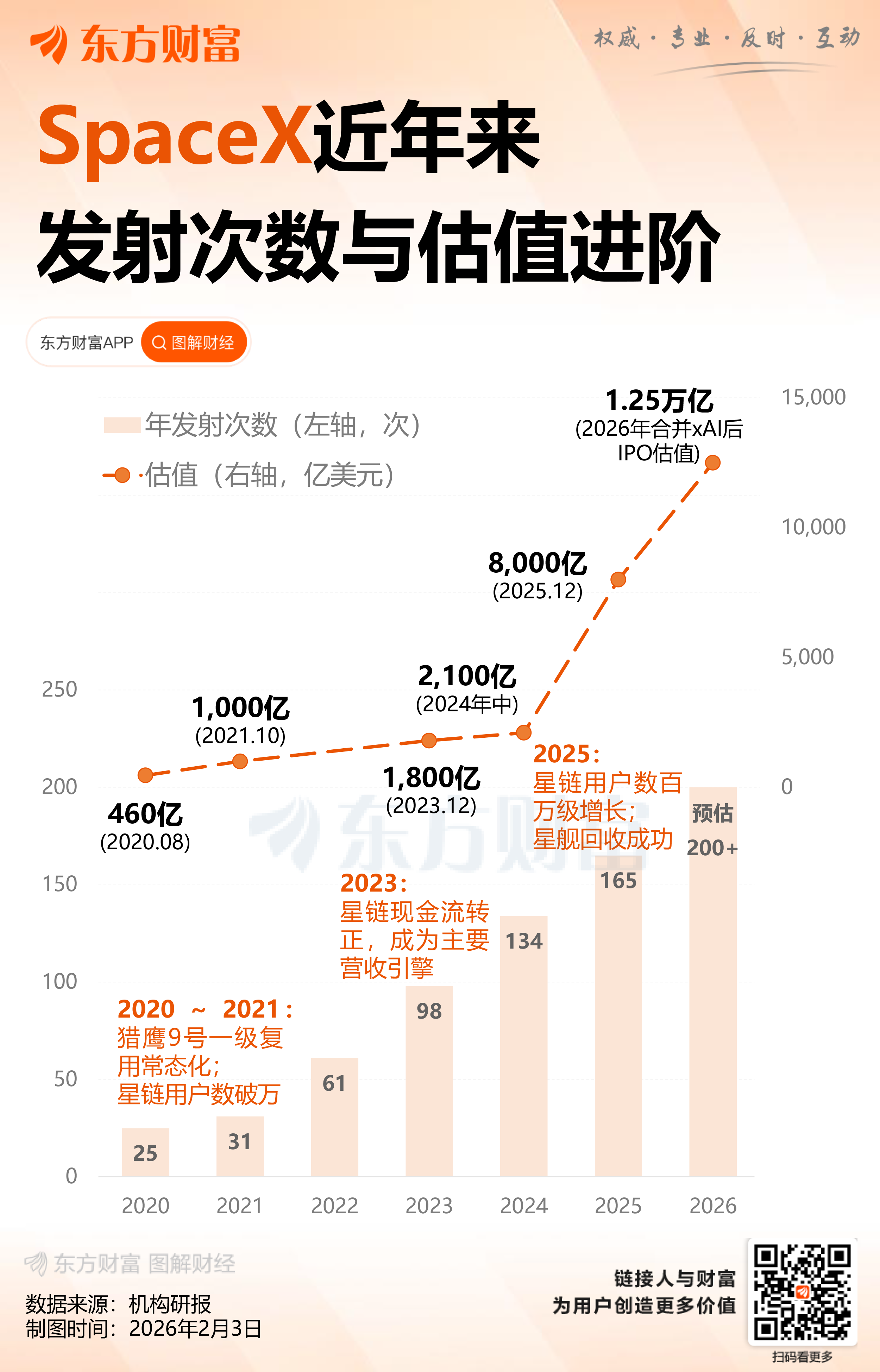 据悉,SpaceX考虑在6月(马斯克生日附近)上市,融资额可能高达500亿美元,或成为史上规模最大的IPO,公司估值有望达到1.5万亿美元,接近特斯拉的1.6万亿美元。