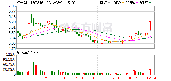 2026年1月20日,即韩建河山停牌前的一个交易日,韩建河山股价突然发力,9点52分便迅速封死涨停板,并登上当天的龙虎榜。