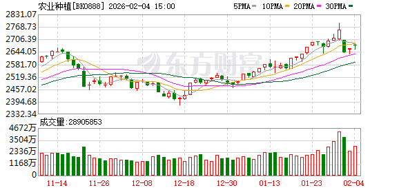 华泰证券研报指出,从估值位置看,截至2025Q4,农业/种植业板块基金持仓占比1.18%/0.07%,分别处于近五年分位数的8%/12%,处于低配状态,从催化因素看,1月至今,布伦特原油期货价格上涨约16%,伴随国内核心通胀指标2025H2延续修复趋势,通胀预期有所提升,且复盘来看种植链在通胀周期超额收益明显,虽然当前全球粮食库存仍处消化阶段,但国内玉米、棉花价格2025年至今已呈现波动上行趋势,当前时点建议加强对种植产业链的配置。