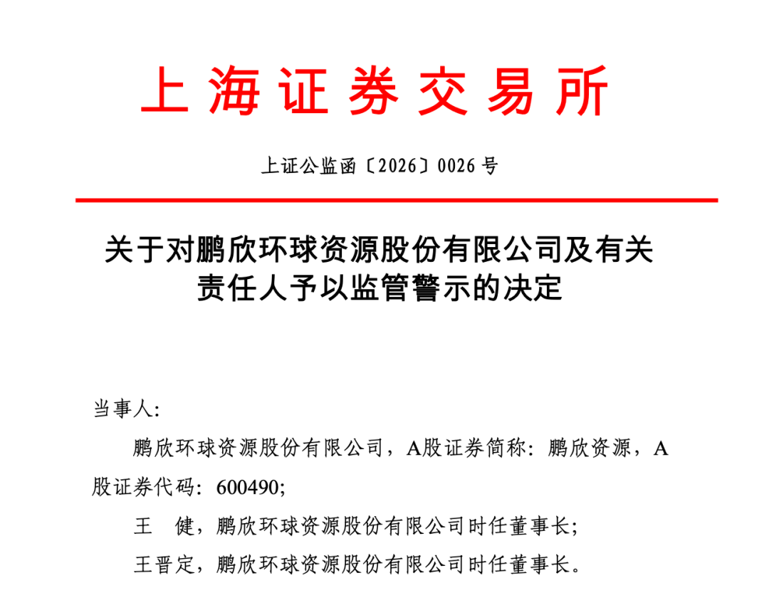 2月3日,上海证券交易所对*ST岩石(600696)和鹏欣资源(600490)开出监管警示函,指向两家公司董事会秘书职位长期空缺的相同违规行为。