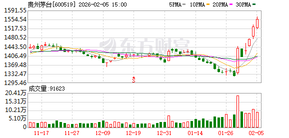 资本市场上,数据显示,贵州茅台近几日表现亮眼,股价5日累计涨幅为9.82%。1月29日,贵州茅台收涨8.61%,更是创下自2024年9月末以来最大单日涨幅,一改此前股价持续低迷态势。