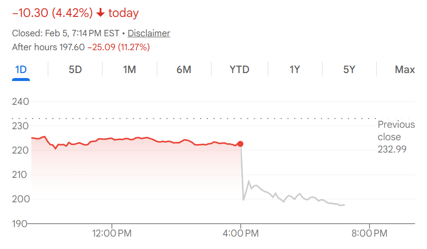 这一支出计划规模不仅超过谷歌母公司Alphabet,更接近META今年支出预计规模的两倍。这一惊人的“烧钱”计划导致公司股价在盘后交易中下跌超过11%。