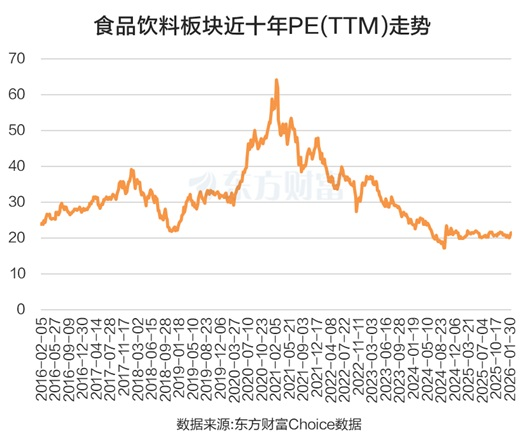 东方财富Choice数据显示,食品饮料板块的最新PE(TTM)为21.45倍,市盈率百分位为有数据以来的12.87%,即当前估值只比历史上12.87%的交易日贵。