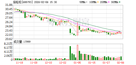 业绩持续承压,倍轻松的股价也是一路下行。截至2月5日收盘,倍轻松股价为22.97元,而其上市时股价最高为131.78元/股,目前市值已不足20亿元。