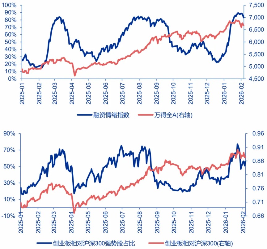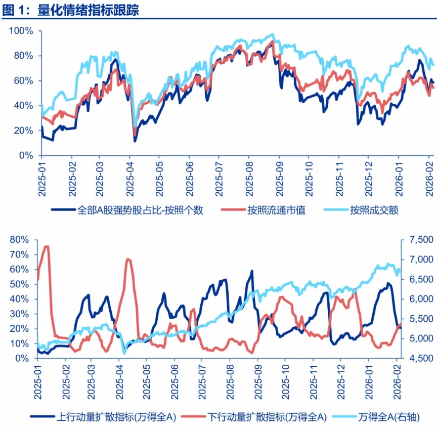小波段调整到什么阶段了?从量化情绪指标看,总体赚钱效应、成长相对价值的赚钱效应均已回落至历史中高位。浮盈偏高、过度交易、拥挤交易的问题短期也有所缓和。短期低性价比不再极端,但性价比改善也尚不充分。快速回调阶段可能已经过去,但基于市场自身力量的反弹力量仍有限。这个阶段,有效反弹需要新催化、新亮点再打开市场向上空间。美股反弹,A股科技也会反弹,但后续可能还有确认震荡区间下限的过程。