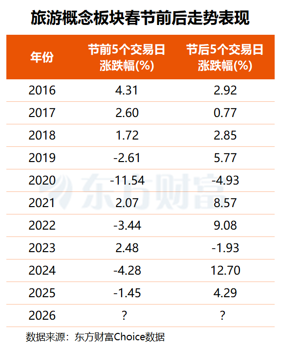 旅游概念板块春节前后涨多跌少