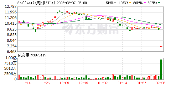 当地时间2月6日,全球第四大汽车制造商Stellantis集团(STLA.US)美股开盘后股价大幅下挫,盘中一度跌超26%,截至收盘跌23.79%。此前,该公司在法国市场的股价(STLAP.PA)一度暴跌近30%,当日收跌25.24%。