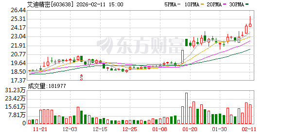 二级市场方面,艾迪精密今日上涨5.08%,盘中股价创近四年新高。