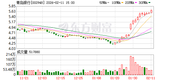 二级市场上,两家银行业绩快报披露后均迎来股价走高。青岛银行业绩快报发布次日涨停,截至2月4日的5个交易日里累计上涨19.22%;齐鲁银行披露业绩次日也跳空走高,当日上涨2.78%。