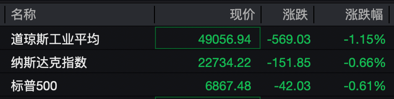 2月23日晚间,美股三大指数集体低开。