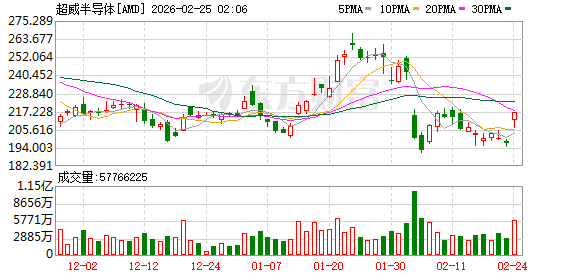 2月24日晚间,美股盘前,AMD公司股价直线暴涨,截至发稿,涨超10%。