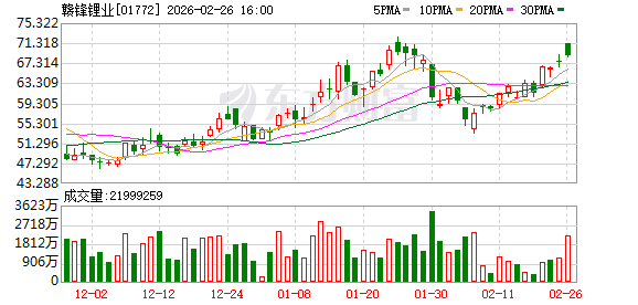 2月23日午后,港股锂电股持续上冲,瑞浦兰钧涨超15%,赣锋锂业涨超8%,中创新航涨超7%,天齐锂业、宁德时代等跟涨。