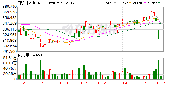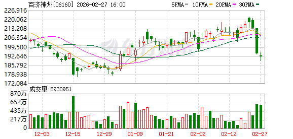 2月26日收盘,百济神州A股报263.44元/股,跌5.65%,市值4058.8亿元;H股跌9.16%,报194.4港元/股,市值2995.7亿港元;美股26日收盘报322.37美元/股,跌8.48%,市值357.6亿美元。