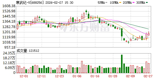 截至2月27日收盘,寒武纪报收1178元/股,涨0.78%,总市值达4967亿元。2026年初以来股价经历过一波比较大的回调,近期有所企稳回升。