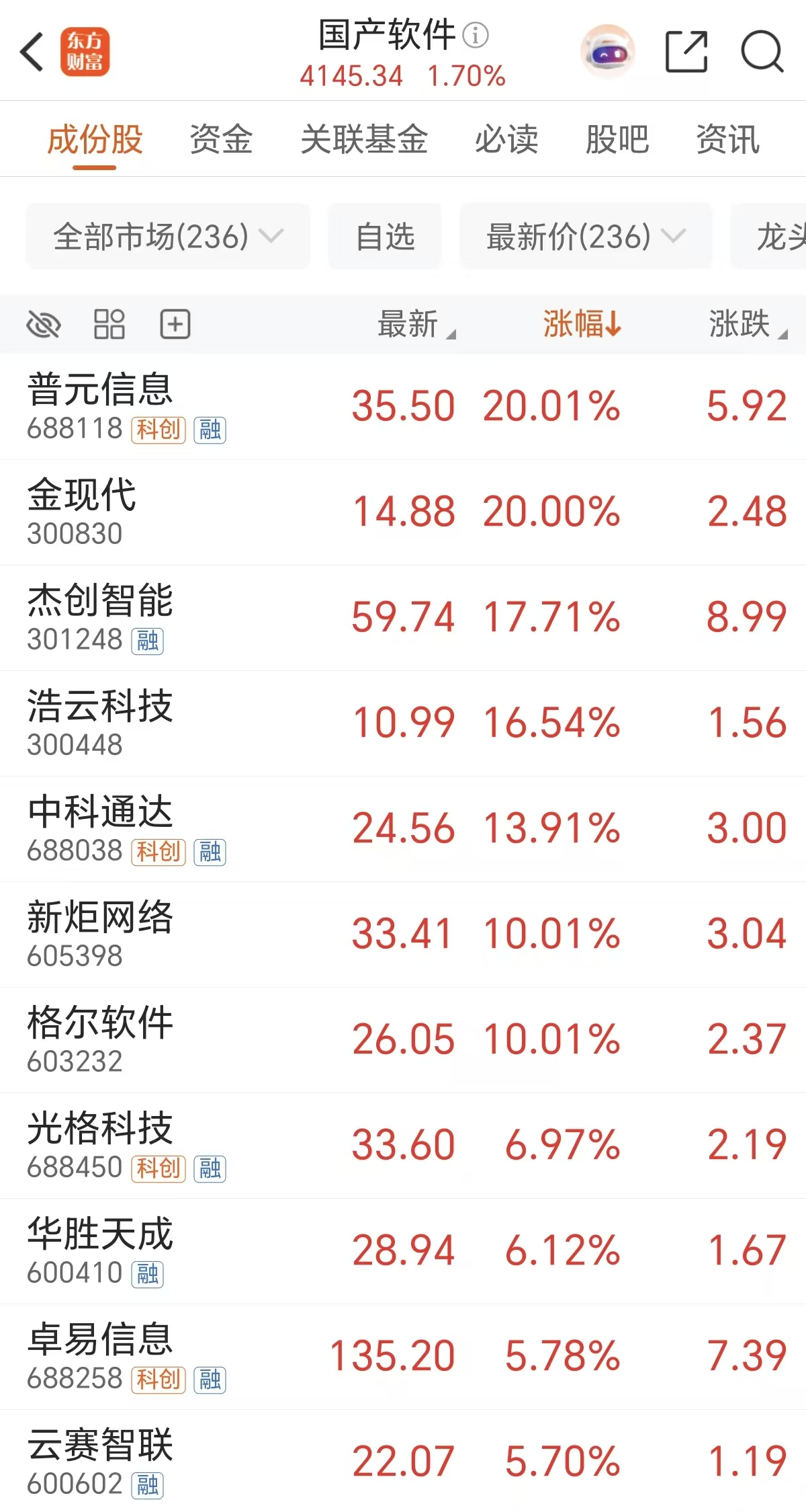 AI硬件这边下去了,节前表现疲弱的AI软件又起来了,普元信息、金现代等20CM涨停,新炬网络、格尔软件等涨停。