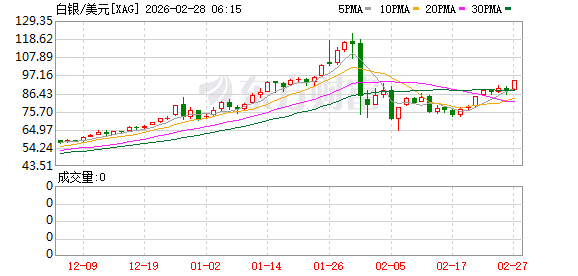 商品市场:国际油价02月27日上涨。截至当天收盘,纽约商品交易所WTI原油期货当月连续合约上涨2.08美元,收于每桶67.29美元,涨幅为3.19%。COMEX黄金期货当月连续合约上涨102.20美元,涨幅1.97%,报5296.4美元/盎司。COMEX白银期货当月连续合约上涨6.80美元,涨幅7.77%,报94.385美元/盎司。现货黄金上涨93.93美元,涨幅1.81%,报5279.22美元/盎司。现货白银上涨5.46美元,涨幅6.18%,报93.76美元/盎司。