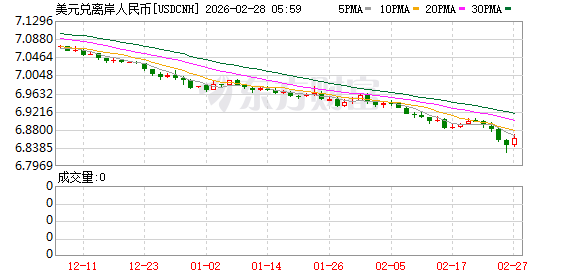 数据显示,自去年12月底人民币汇率升破7.0关口后,2026年开年人民币汇率延续升值趋势,人民币兑美元一直处于7之下,今年离岸价最高为6.9957。2月以来,人民币兑美元汇率中间价累计升值超过300个基点,在岸、离岸人民币兑美元汇率今年升值幅度都超过2%。