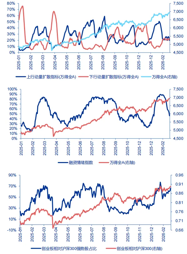 二、短期市场特征观察:春节后,A股对长期科技叙事的反映偏弱,对当下可见的“新老经济通胀”反映非常积极。这与“HALO交易”在A股的映射有关,也与美联储宽松预期扰动,A股科技叙事行情演绎相对充分有关。