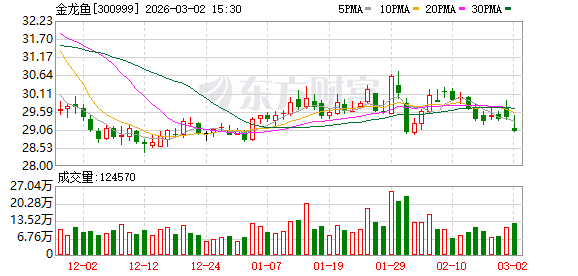 2月26日晚间,金龙鱼(SZ300999,股价29.35元,市值1591亿元)发布业绩快报。2025年,公司营收、利润预计实现双增长,主要系厨房食品、饲料原料及油脂科技产品的销量较上年均有所增加。