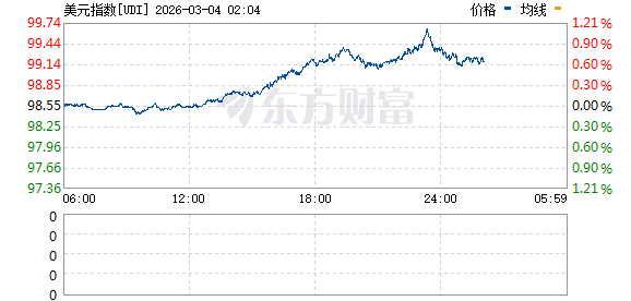 盘中,美元指数(DXY)一度站上98,日内涨幅一度接近0.40%。截至发稿,美元指数涨幅收窄至0.26%。