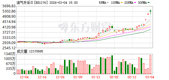 3月3日,A股集体走弱的情况之下,石油天然气指数大涨9.83%、燃气指数涨9.29%、海运指数涨8.82%、能源设备指数涨幅5.91%。