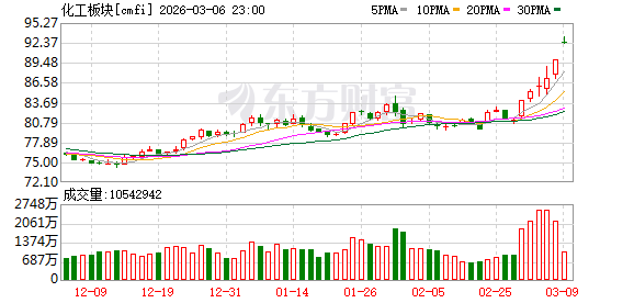 3月3日,国内多种化工商品期货收涨,甲醇、塑料、聚丙烯、乙二醇涨停,对二甲苯、苯乙烯、沥青涨超4%。