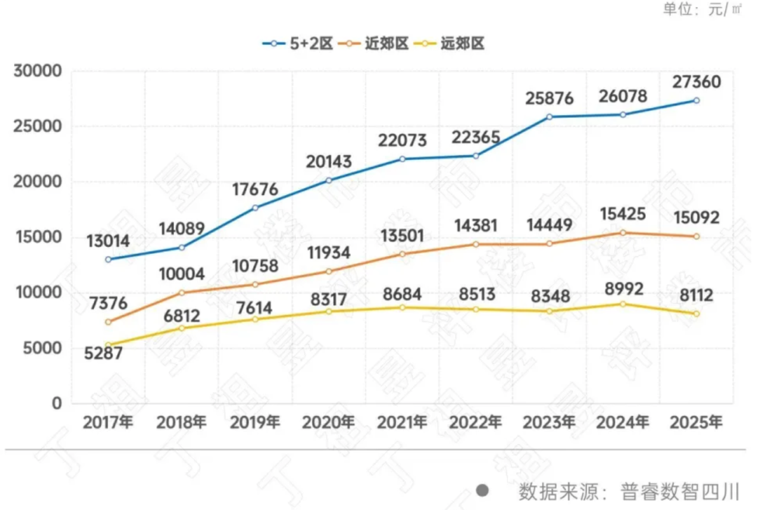 “良好的供求关系有利于市场稳定发展。”丁祖昱表示,成都“5+2”中心城区不足1年的供需紧平衡,也使得该区域房价延续多年上涨态势,其中2025年“5+2”区住宅成交均价同比上涨4.9%,套均总价突破400万元。
